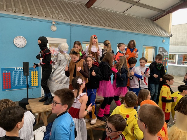 Après avoir dansé et paradé dans la cour de l’école, nous avons apprécié les bonnes crêpes apportées par les enfants.